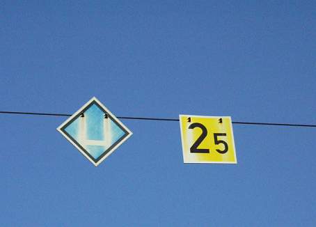 Der Hinweis zur Höchstgeschwindigkeit 25 km/h befindet sich "pro forma" an jeder Oberleitungsweiche und -kreuzung. Schnellfahrweichen beispielsweise werden in Vorzugsrichtung von manchen Fahrern mit 25 km/h, von anderen aber auch mit 50 km/h ohne Stangenentgleisung befahren.