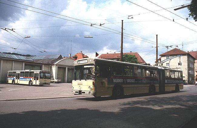 elektrisch betriebene Linie (Obus-/Dieselbusbetrieb; bis 2008 auch Duo-Bus-Betrieb, ab 2016 auch Betrieb mit IMC©-Batterie-Obussen): 101 Lerchenäcker - Bhf. Esslingen - Mettingen - Obertürkheim und zurück Fahrzeugbedarf max. 6 Gelenk-Obusse (Mo-Sa: 5 Grundkurse) Fallweise wird an Schultagen der Frühverstärker Linie 101/115 von einem Batterie-Obus gefahren.