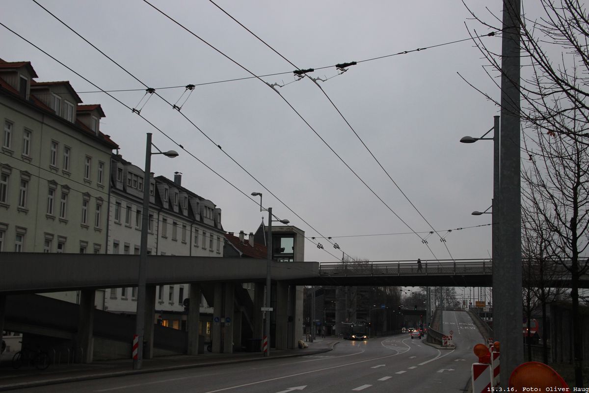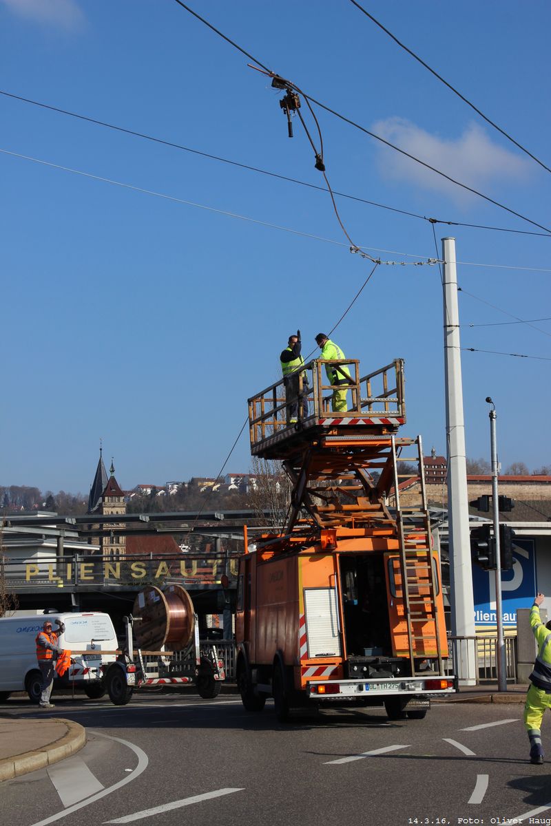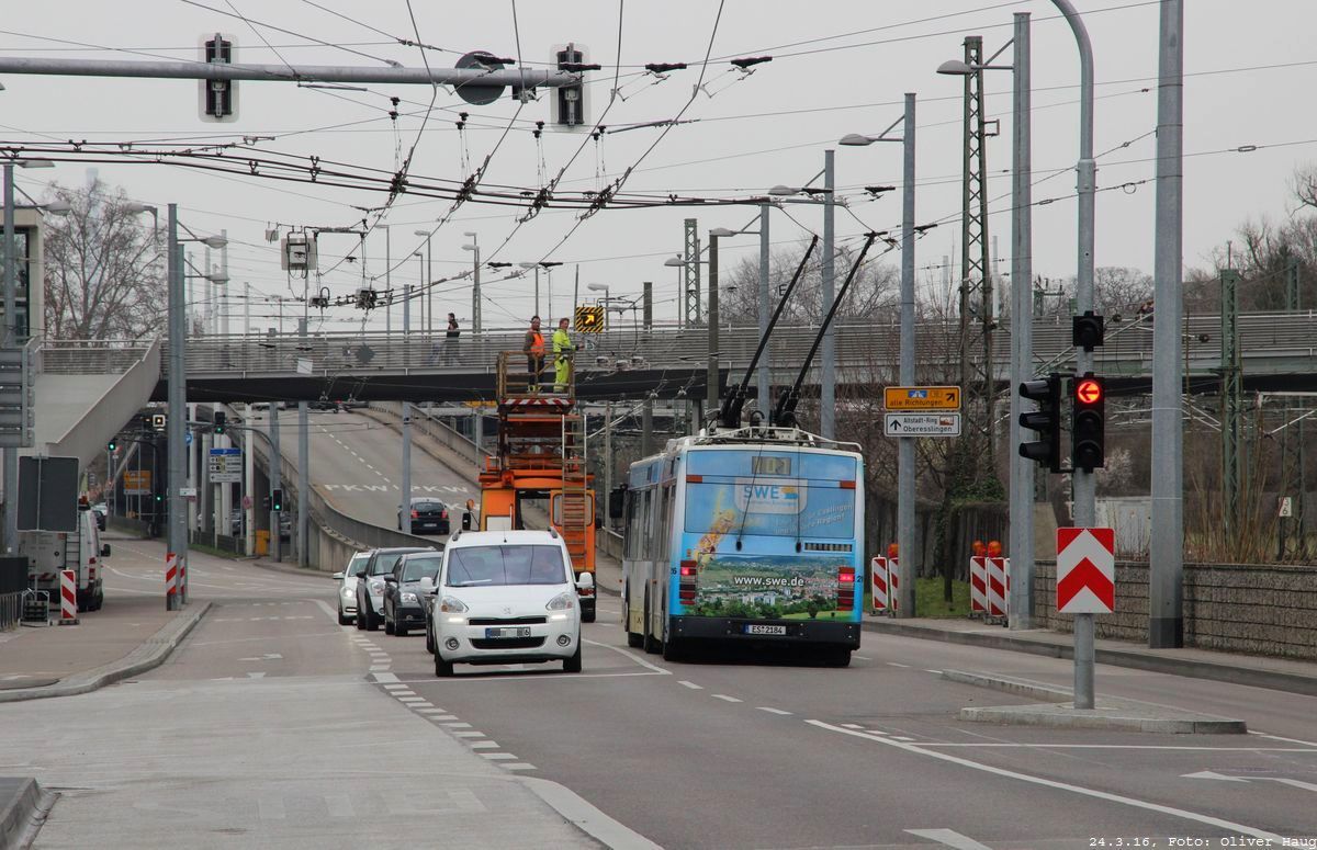 Schwimmbad/Charlottenplatz bzw. ZOB bis Weilstraße mit Dieselhilfsantrieb. Die Arbeiten, die diesmal nur tagsüber