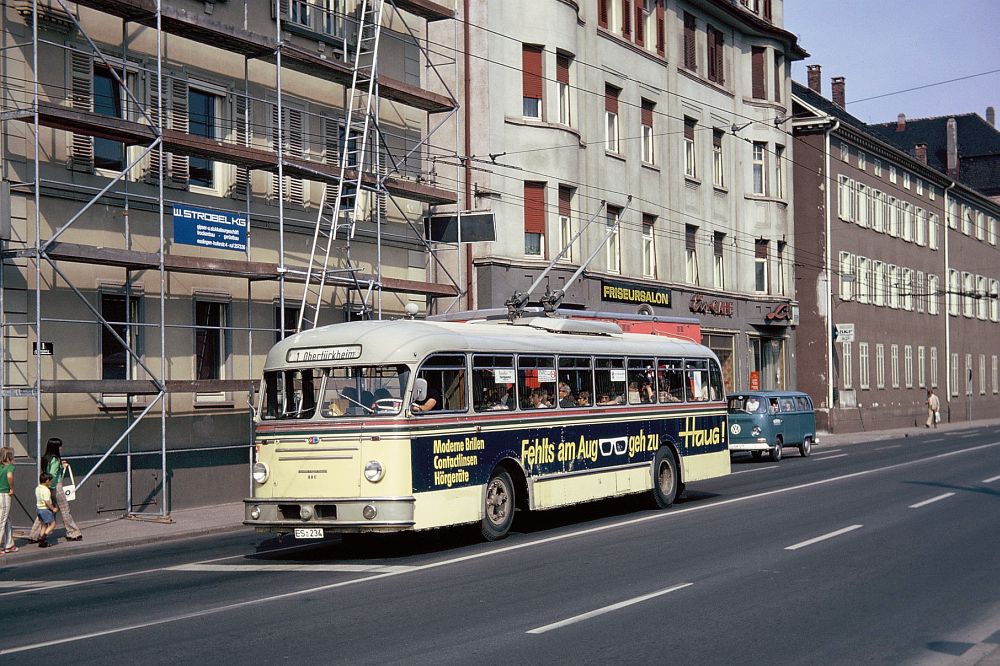 Obus 14 in der Neckarstraße (ca. 1976) Foto: Walter Raible