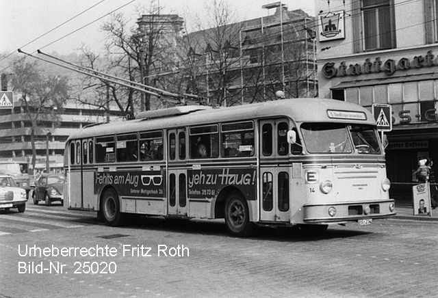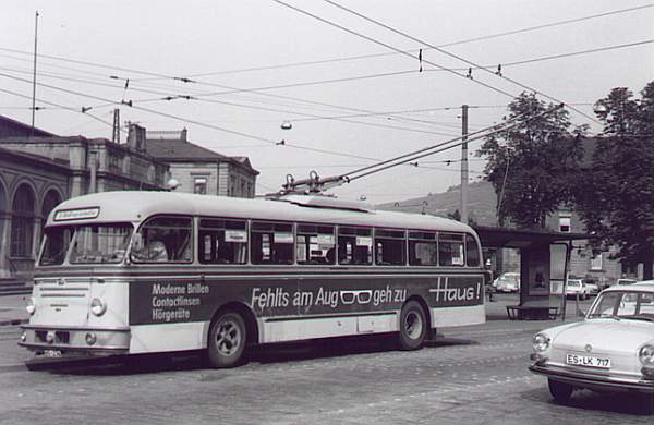 Obus 14 am 30.03.1972 am Esslinger Bahnhofplatz Mit freundlicher Genehmigung von Fritz Roth (†), Maintal. Bezug unter www.nahverkehrs-bildarchiv.de möglich.