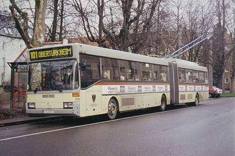 Duo-Bus 315 am 21.05.2000 auf der Vogelsangbrücke Foto: Ronald Krüger