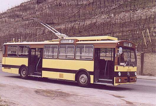 Der Prototyp im März 1979 auf Probefahrt in der Mettinger Straße Aufnahme: Slg. M. Schindler